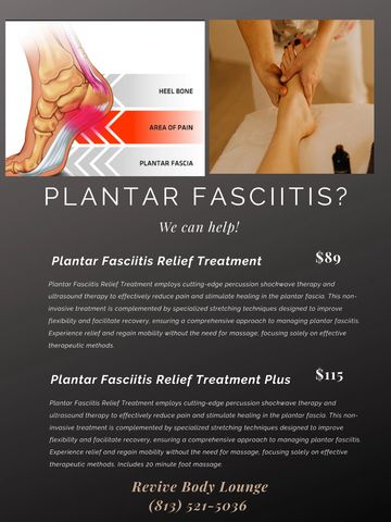 Plantar Fasciitis Relief Treatment employs cutting-edge percussion shockwave therapy and ultrasound therapy to effectively reduce pain and stimulate healing in the plantar fascia. This non-invasive treatment is complemented by specialized stretching techniques designed to improve flexibility and facilitate recovery, ensuring a comprehensive approach to managing plantar fasciitis. Experience relief and regain mobility includes 20 minute foot massage.